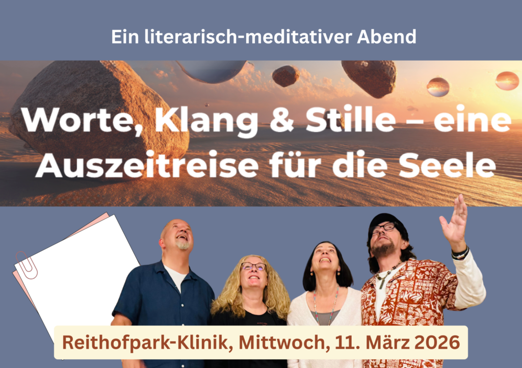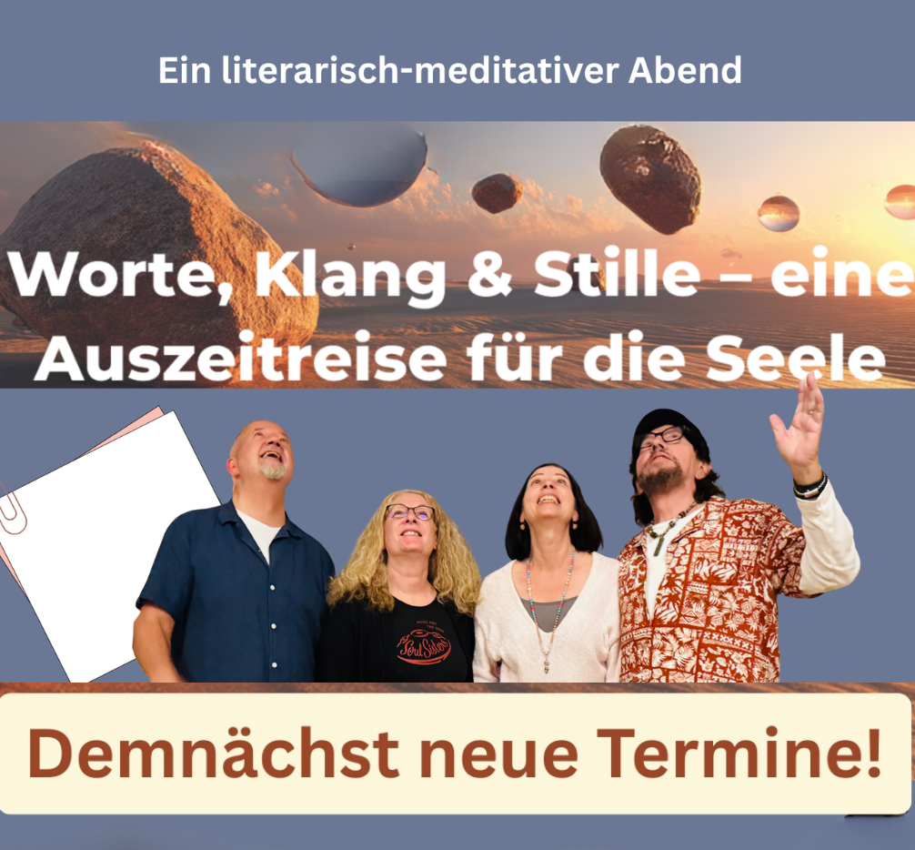 … und erleben Sie einen einzigartigen Abend. Mit meditativen, literarischen und musikalischen Impulsen, die zum Nachdenken und Spüren einladen. Hier anmelden und mehr Infos holen